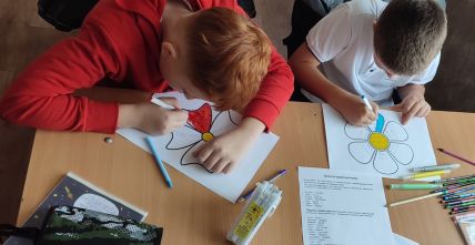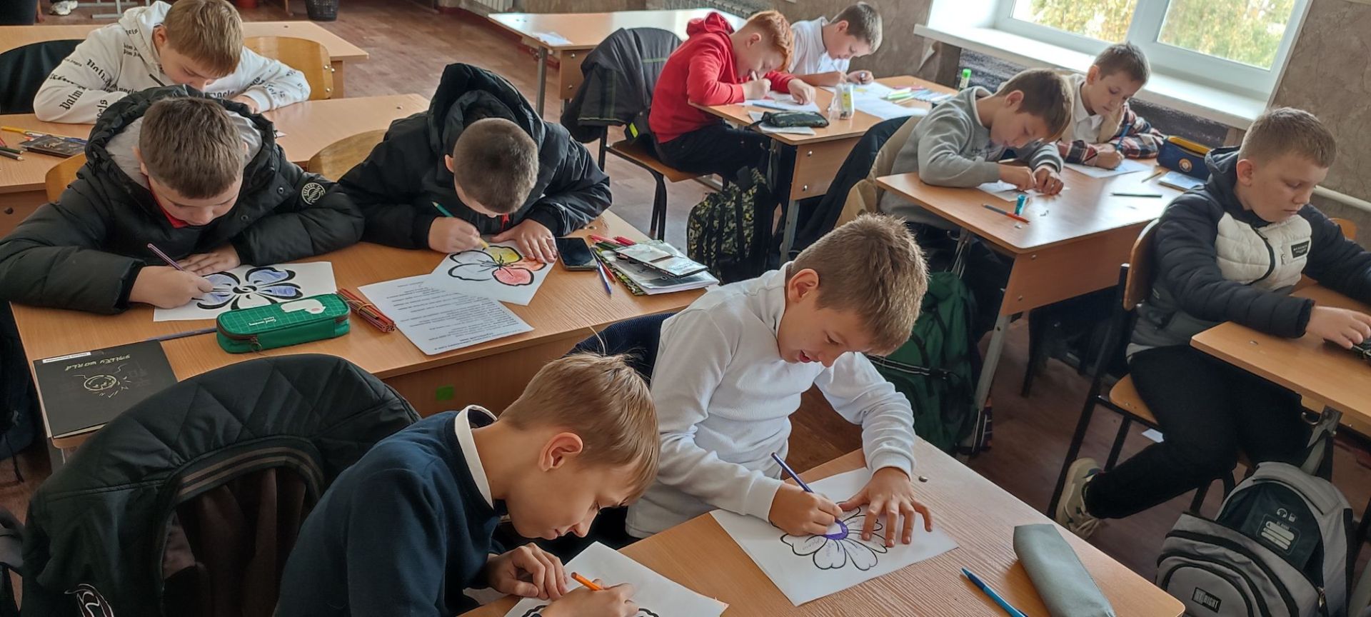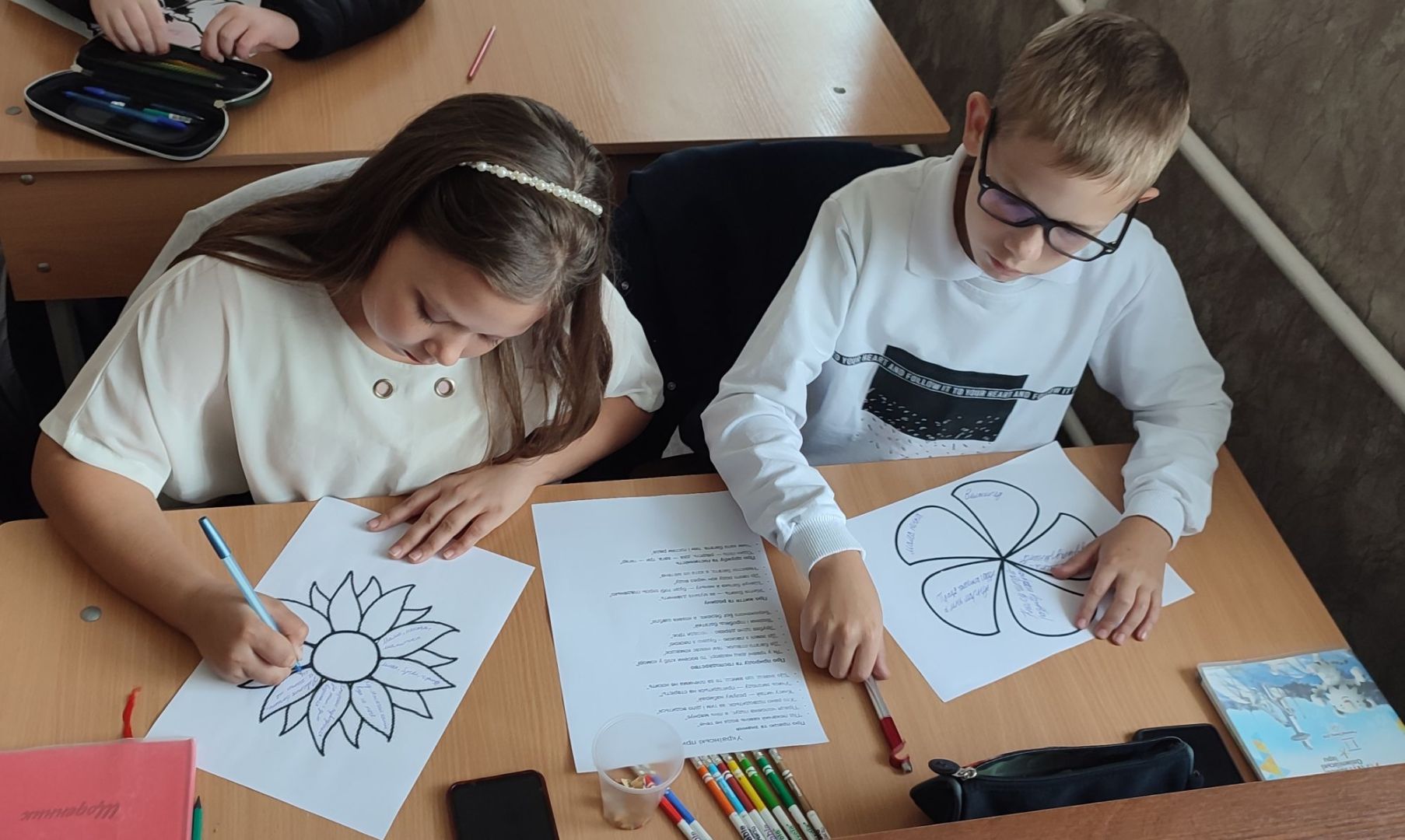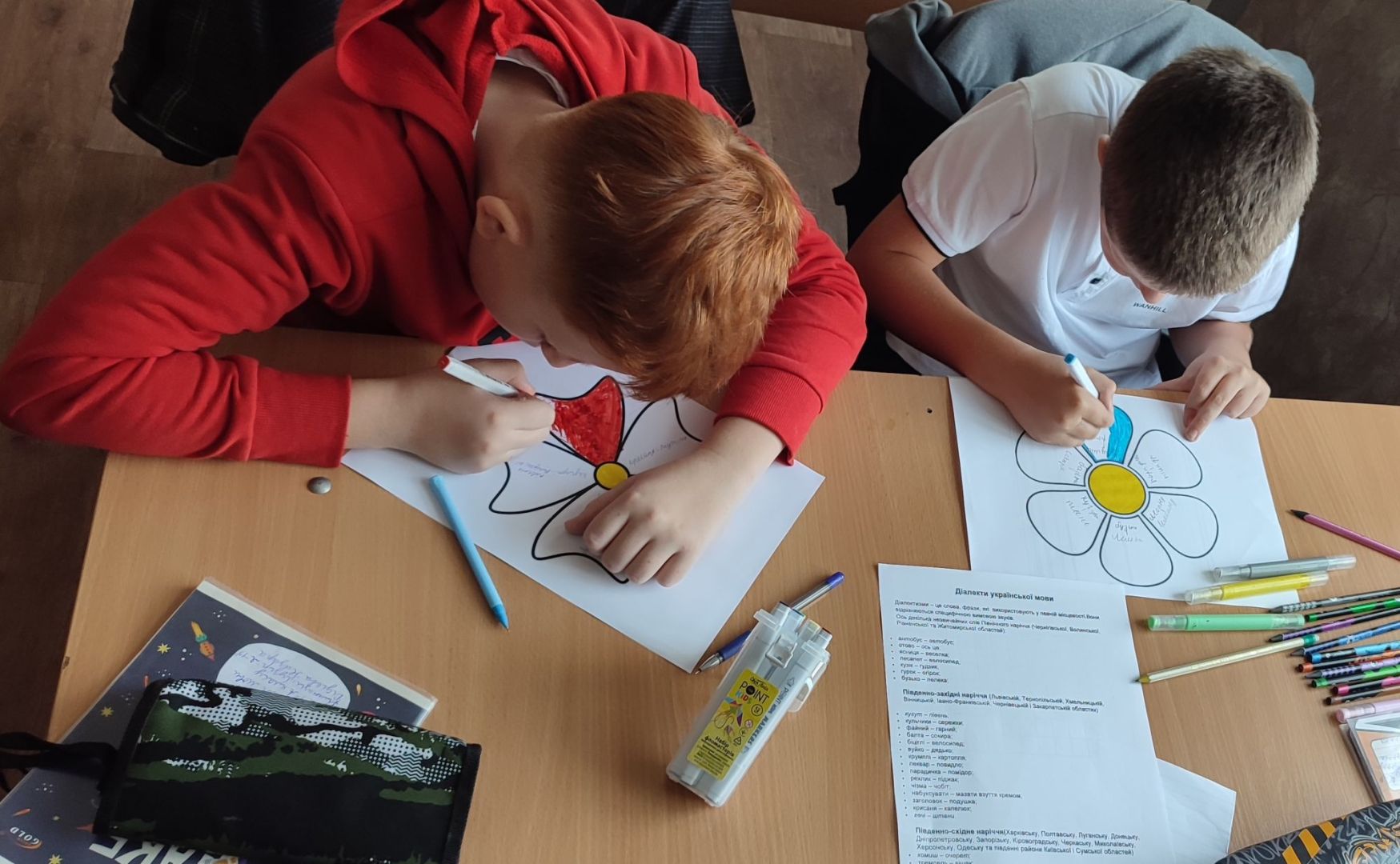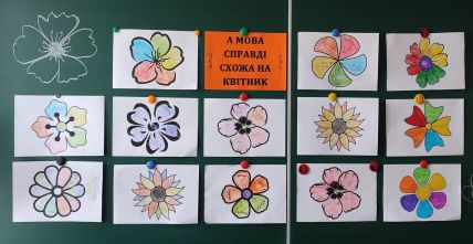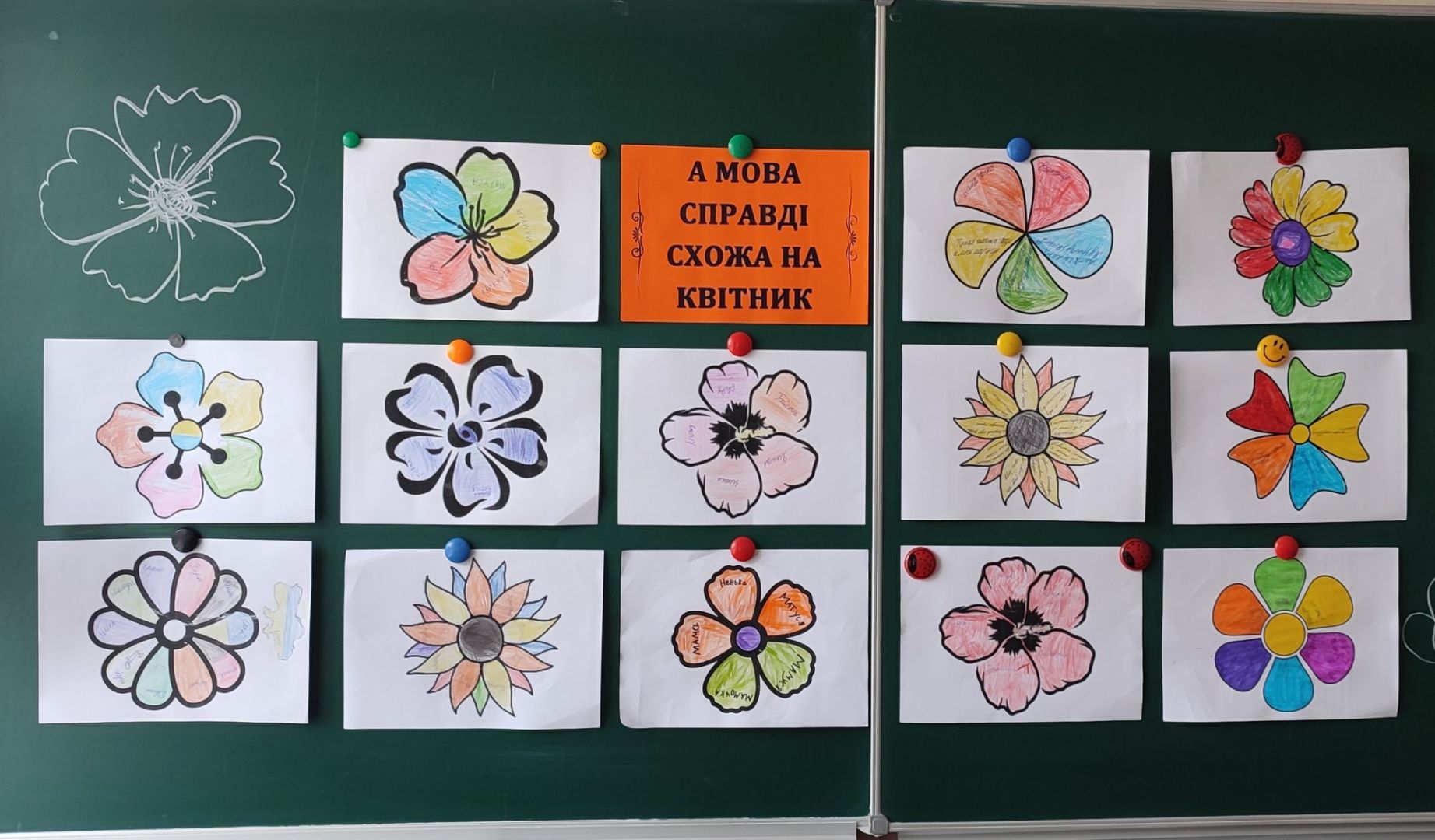 Також під час заняття використано елементи STEAM-освіти. Діти, застосувавши знання з лексикології, зобразили рідну мову у вигляді квітника, у якому буяють соняшники, маки, ромашки, гвоздики, космеї…