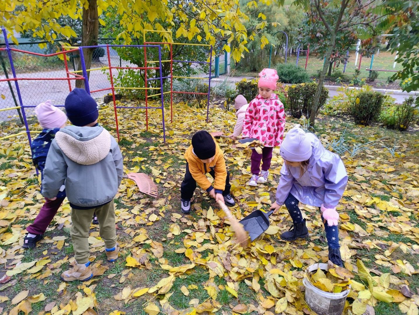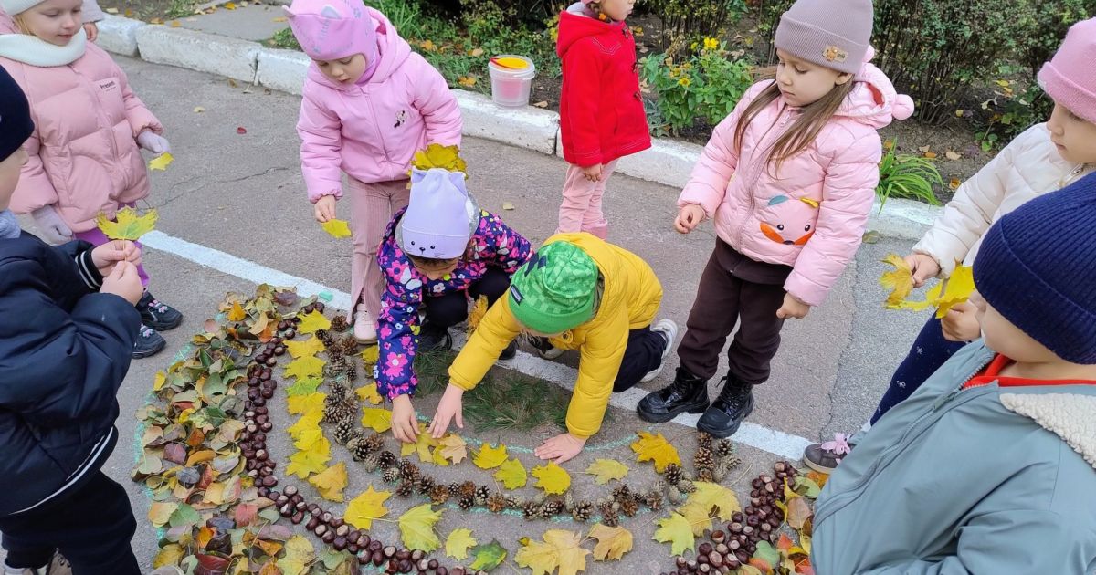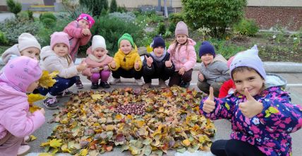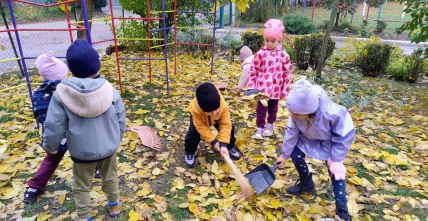 Під час прогулянки вихованці середньої групи «Чомусики» грали з осінніми листочками, горішками, каштанами та шишками - викладали різні візерунки, створювали «картини». А потім долучились до праці на майданчику - згрібання листя. Це не лише корисно, в й створює відчуття відповідальності та згуртовує колектив.