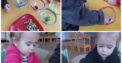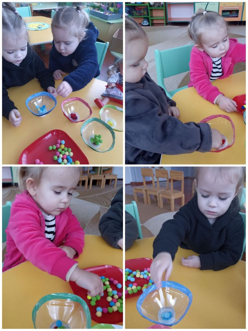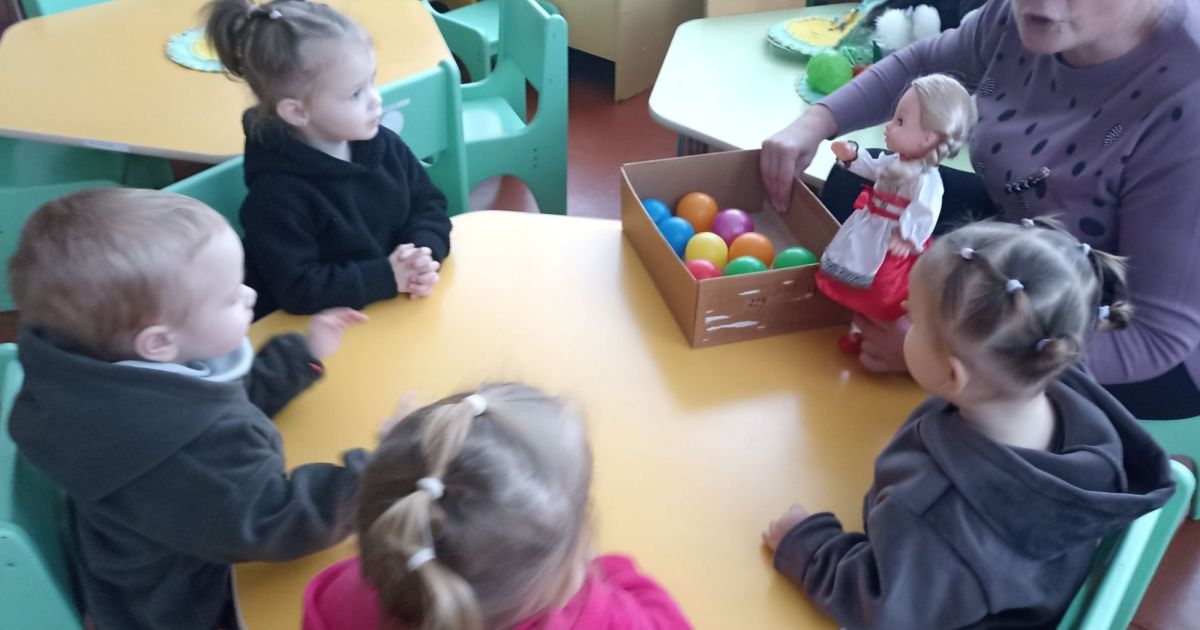 Вона принесла діткам кольорові кульки і запросила їх до цікавої гри. Під час заняття малята вчилися добирати предмети за кольором, групувати їх відповідно до кольору, розвивали увагу та спостережливість