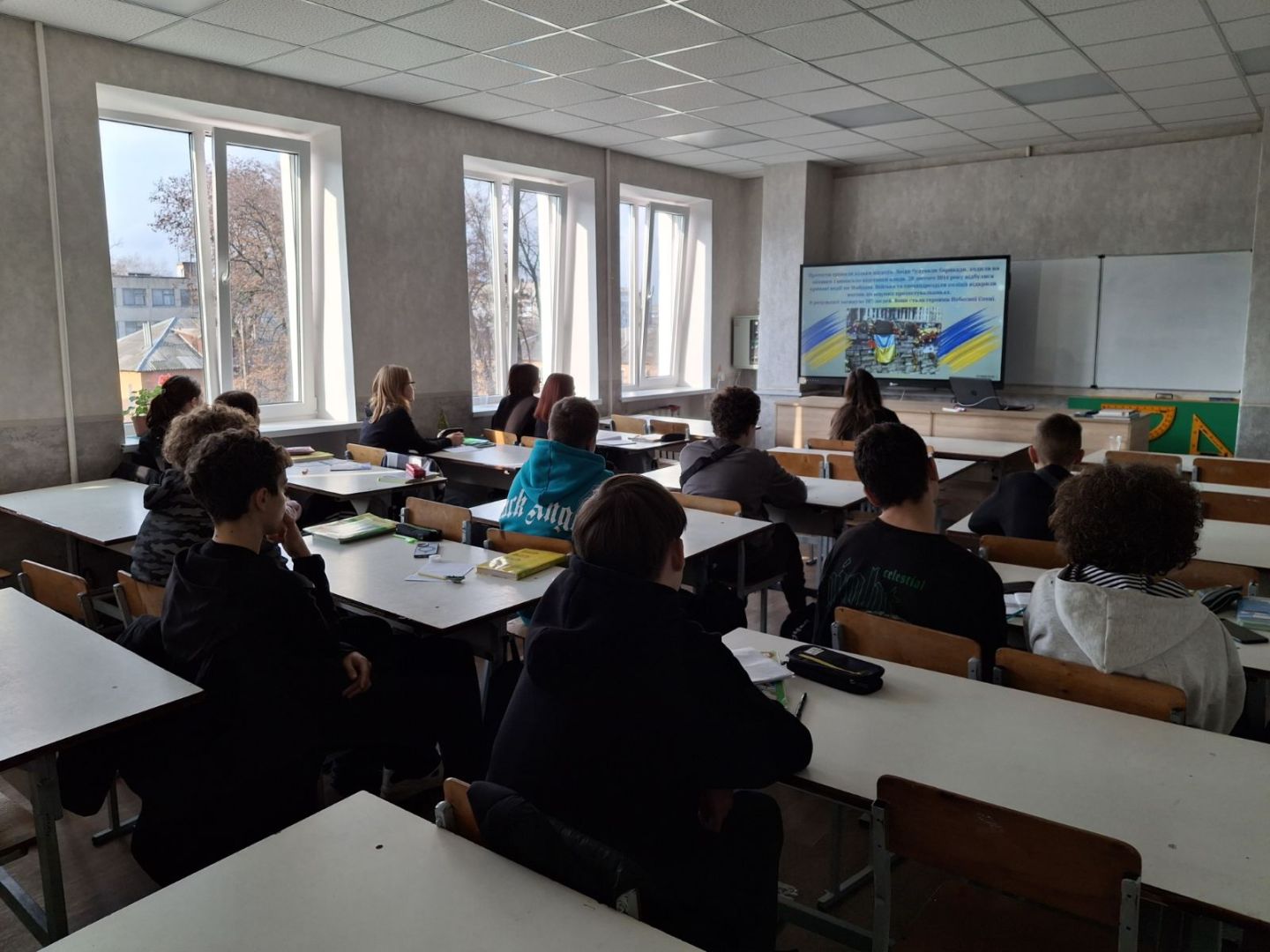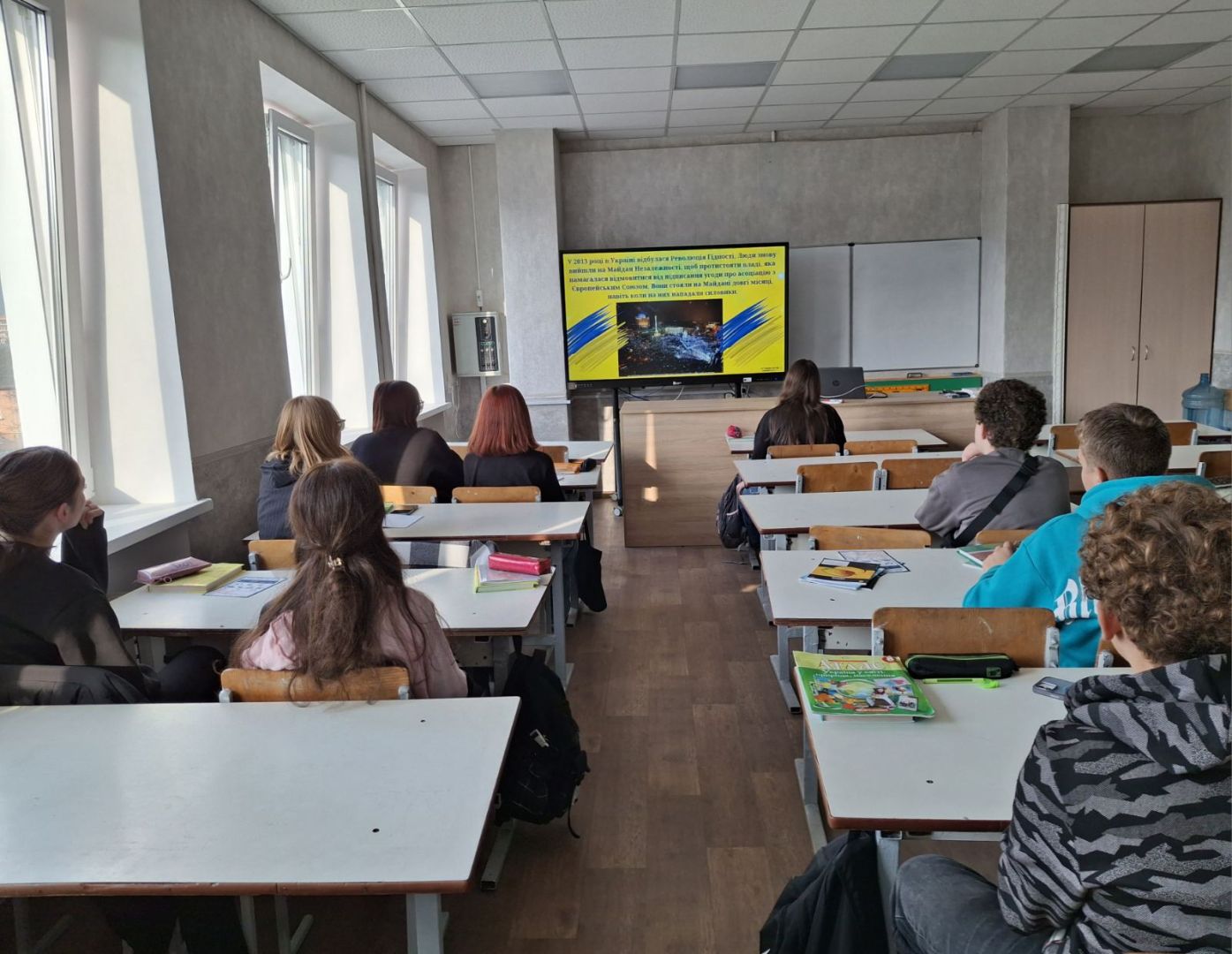 21 листопада у 8-В класі була проведена година спілкування, присвячена Дню Гідності та Свободи України. Учні переглянули інформаційні матеріали, обговорили події Революції Гідності та значення цього дня для українського народу. Восьмикласники зробили висновок, що гідність, свобода та патріотизм - це цінності, які кожен повинен зберігати та відстоювати, адже саме вони формують майбутнє нашої держави.