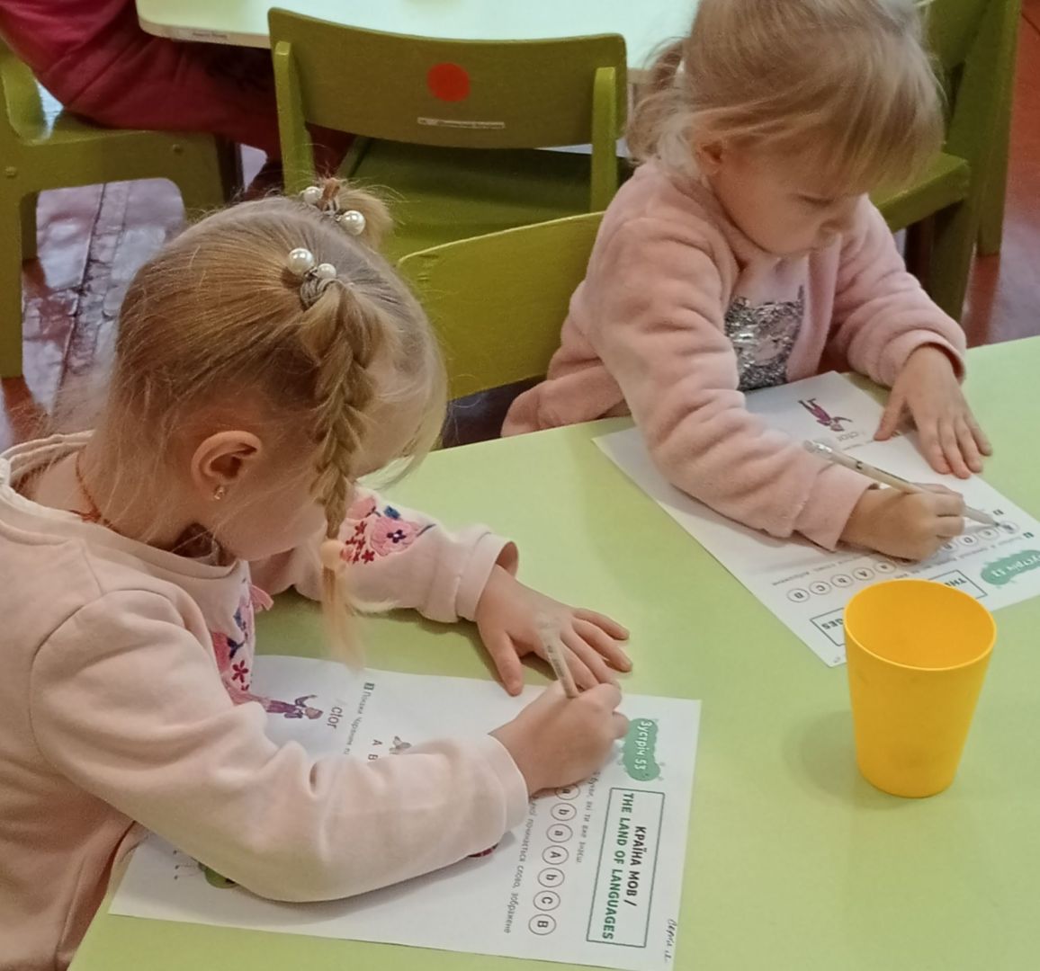У нашій групі триває захоплива подорож до країни нових знань. Малюки з цікавістю опановують перші англійські слова та вирази згідно з парціальною програмою розвитку дитини дошкільного віку «Intellect Baby». Під час занять діти: слухають кольорові пісеньки англійською; вчать назви іграшок та улюблених предметів; повторюють кольори й форми у грі; тренують вимову через рухливі й мовленнєві ігри; знайомляться та відпрацьовують англійські вислови. Завдяки ігровим методам малята легко запам’ятовують нові слова, розвивають увагу, мислення та впевненість у собі. Кожне заняття — це радість відкриттів та маленький крок до великого майбутнього!