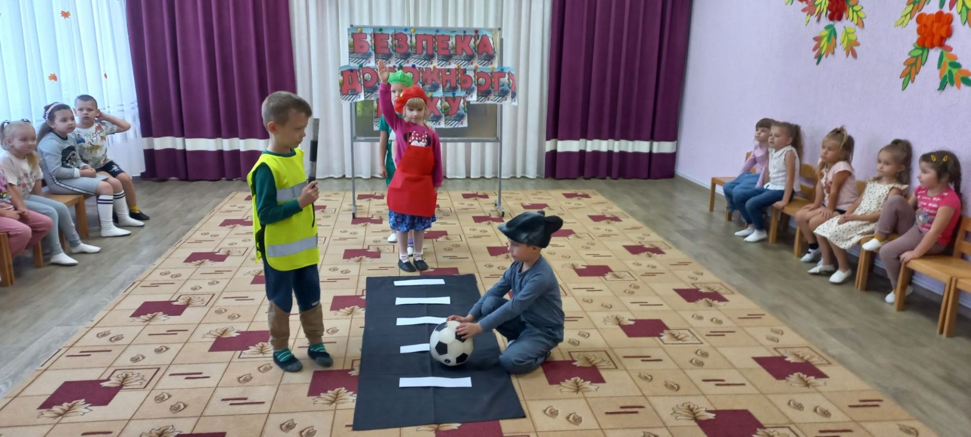 З нагоди тижня БЖД "Дорога миру: Правила дорожнього руху для безпечного майбутнього" з вихованцями старшої групи "Дослідники" проведена розвага "Малеча стій, не вибігай, в м'яча на дорозі не грай", під час якої діти закріпили знання про те, що: не можна вибігати на дорогу; гратися м’ячем на вулиці небезпечно; переходити дорогу слід тільки на зелене світло та по «зебрі». Через рухливі ігри, віршики та яскраві завдання діти вчилися бути уважними пішоходами. Адже найважливіше — це життя та безпека наших дітей